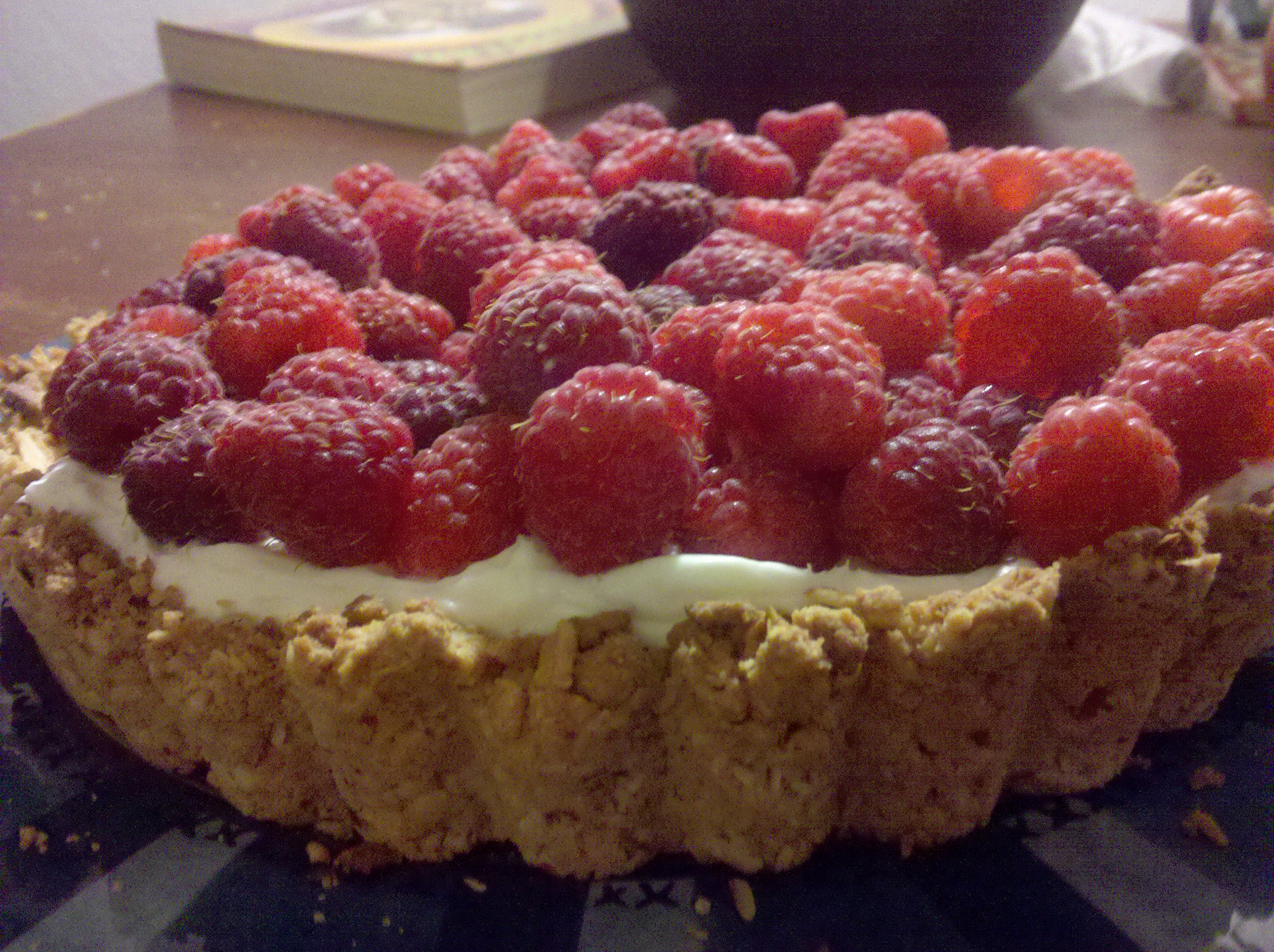 1. I was kidding about the $5…(though he might not have been). Eventually I’ll post some recipes for free, but there’s only one tart one and I think you already have it. Though we did change it, it’s better with more cream and less cream cheese in the creamy part, and luckily Marty grows raspberries so we had plenty of those. See you soon, Mama Waters!