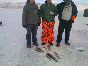 Unfazed, Randy just kept drilling holes in the ice with a big gas powered cork screw. When he’s finally got 20 holes done. He says “The cracking is a good thing. It means the ice is solid. What you don’t want is flaky ice that breaks.” This is why Randy is my redneck connection and not because he’s the only one on the ice with an Argo wearing tank tracks. “That sound is the ice expanding and retracting.” Later, he also tells us not to get to close to the bank of the reservoir. “The ice is pretty thin over there.” He often warns as Alex and I wonder off to pee.