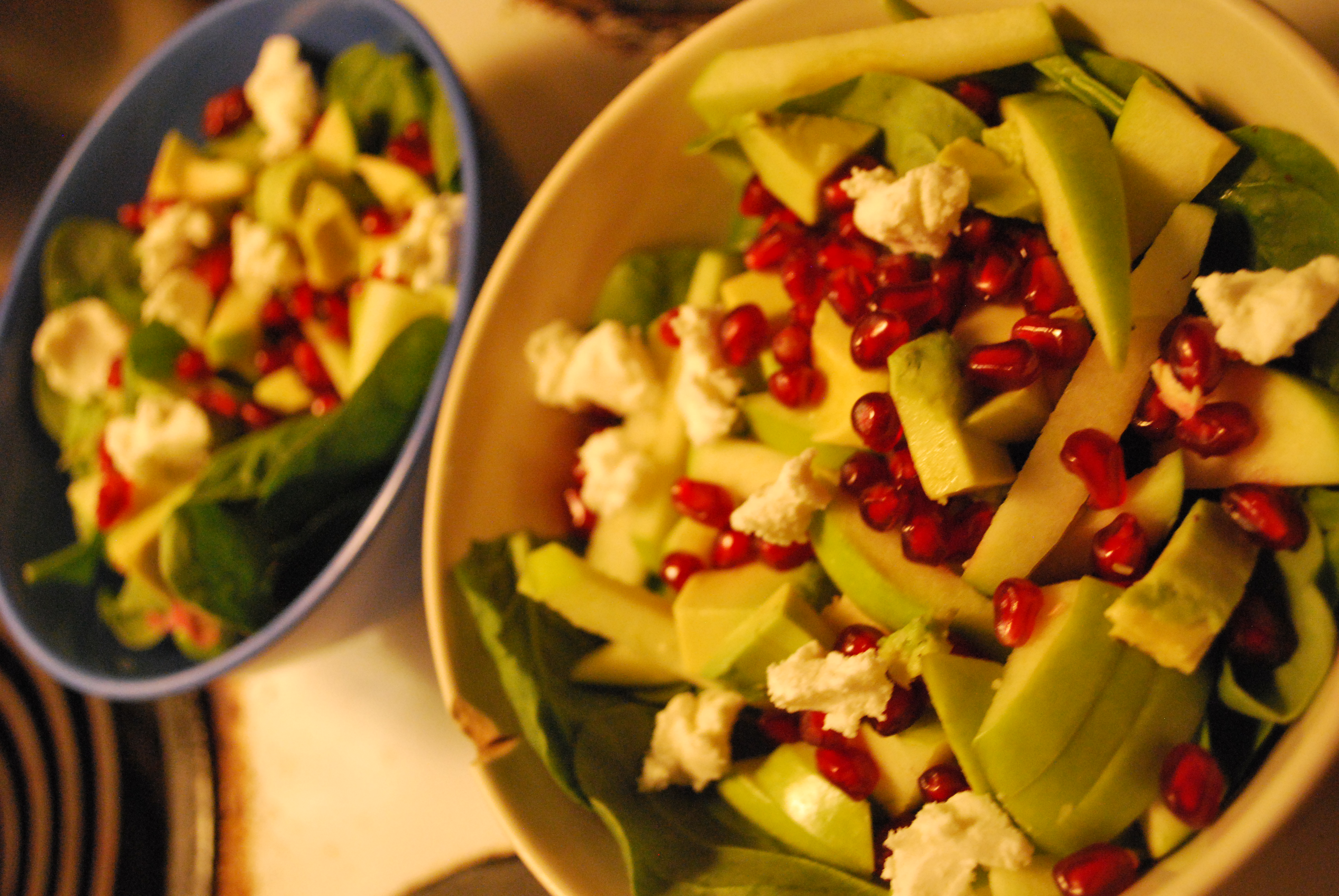 Today’s Salad Posted on January 20, 2011 by castironidaho Leave a comment We’re trying to eat salad every day. Here’s what we ate with the Mac ‘n Cheese. Spinach Sliced Green Apples Avocado Pomegranate Pumpkin Seeds Goat Cheese Olive Oil and Balsamic for Dressing Share this: Click to share on Facebook (Opens in new window) Facebook Click to share on X (Opens in new window) X Click to share on Pinterest (Opens in new window) Pinterest Click to email a link to a friend (Opens in new window) Email Like Loading... Related