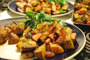 With all this excitement about early spring farming, we’ve been falling behind on the recipe posts! So I thought I’d tell you about our Valentine’s Day dinner. Like every other day, Marty and I decided to show our love for each other by cooking a meal together. We made venison with roasted winter vegetables and steamed beet greens, and a Shaker Lemon Pie. The venison, Marty seasoned with salt and pepper, pan-seared in our cast iron, and finished roasting in the oven. The beet greens we just steamed in a vegetable steamer for a few minutes. The other two recipes are on the following two posts, scroll down to see them.