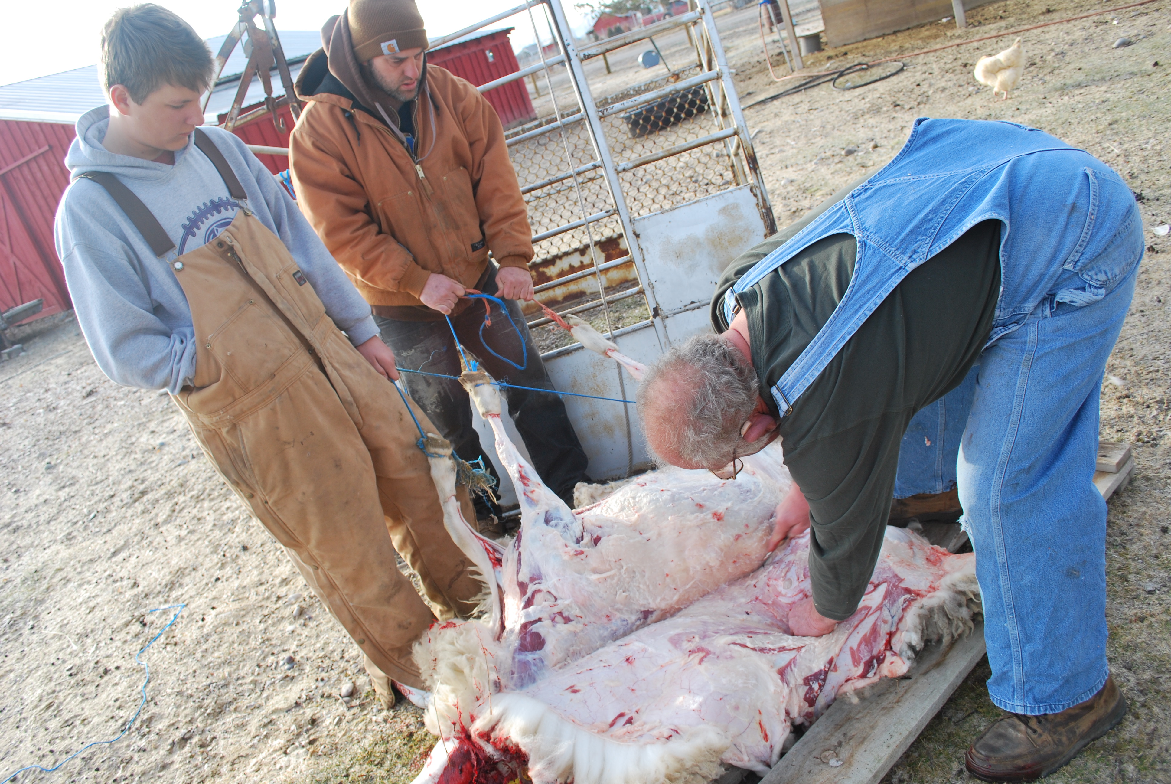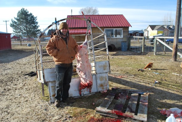 Before you go out to confront the alienation between you and your meat and start killing your pets, I suggest you find a mentor. One who has experience with raising animals and slaughtering them. My first killing was some old hens. My teachers were a couple of 80 year old Basque women. For sheep and other wild game, Randy is my connection.  For the kill, gutting and skinning it takes practice and should be done under tutelage.