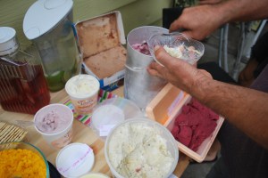 Some of the awesome flavors included Basil, Peach, Lemon Custard, Baklava, Vanilla, Mango Lime Granita, and our contribution, Basil Berry. Folks who didn’t have ice cream making equipment were allowed to bring their favorite store bought flavor (and I have to admit that Ben and Jerry’s Cookie Dough, and the Huckleberry Gelato from the Coop, are hard for us amateurs to beat).