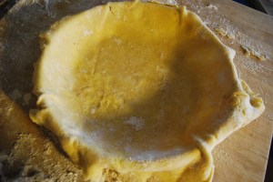 On this day I was making just a one-crust pie, so I crimped the edges with my fingers and then trimmed off the extra. (You can use this extra to patch a hole or crack if needed). For a two crust pie, fill the pie, place the second crust on top, then crimp them both together with your fingers or a fork. Some of our favorite pies are pumpkin, apple, and peach. What’s your favorite?