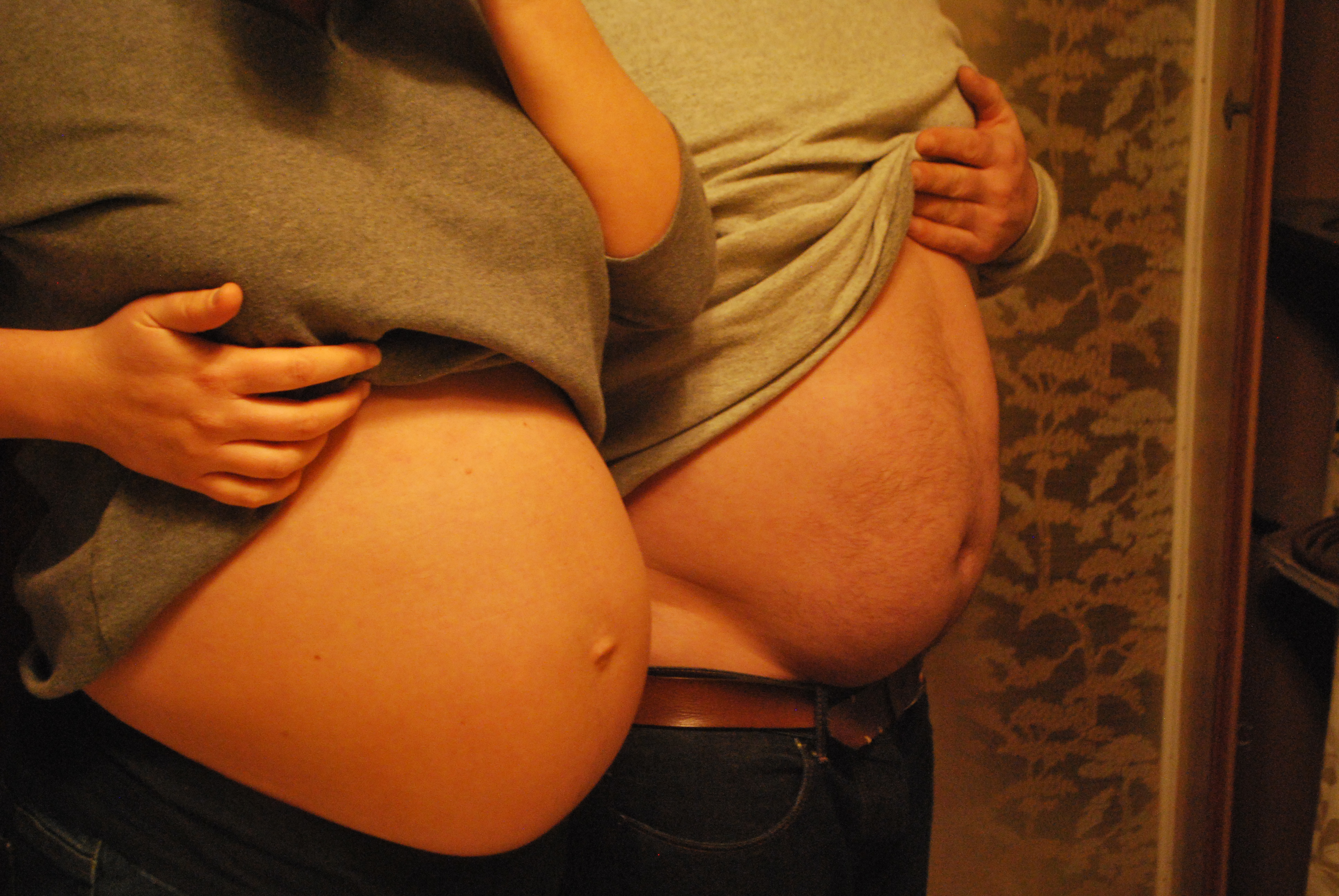 It’s official: Marty and I now have matching bellies! 30 weeks down, 10 to go! The Cast Iron Baby is still growing right along, moving and kicking a lot, and according to the midwife, positioned head-down and ready to be born at the end of March! I am still feeling excellent, though a bit more tired as I get bigger and move toward the end of pregnancy. But many of the common complaints of pregnant women I have not had, at least not yet, and I attribute this to good eating and diligent exercise. It was a little hard not to eat too much sugar over the holidays, but the baby is good motivation to do the things I should be doing anyway. The period of being really, really hungry all the time seems to have passed, and there’s less and less room in my belly for food. So, I’m eating smaller meals but trying to make sure I get all the proper nutrition for pregnancy. I recommend lots of meat, beans, and nuts for protein and iron. I usually try to eat lots of calcium at breakfast time, and have been buying calcium fortified juice. Juice is the one thing I always crave, and during the third trimester, babies’ bones grow a lot, so moms need extra calcium.