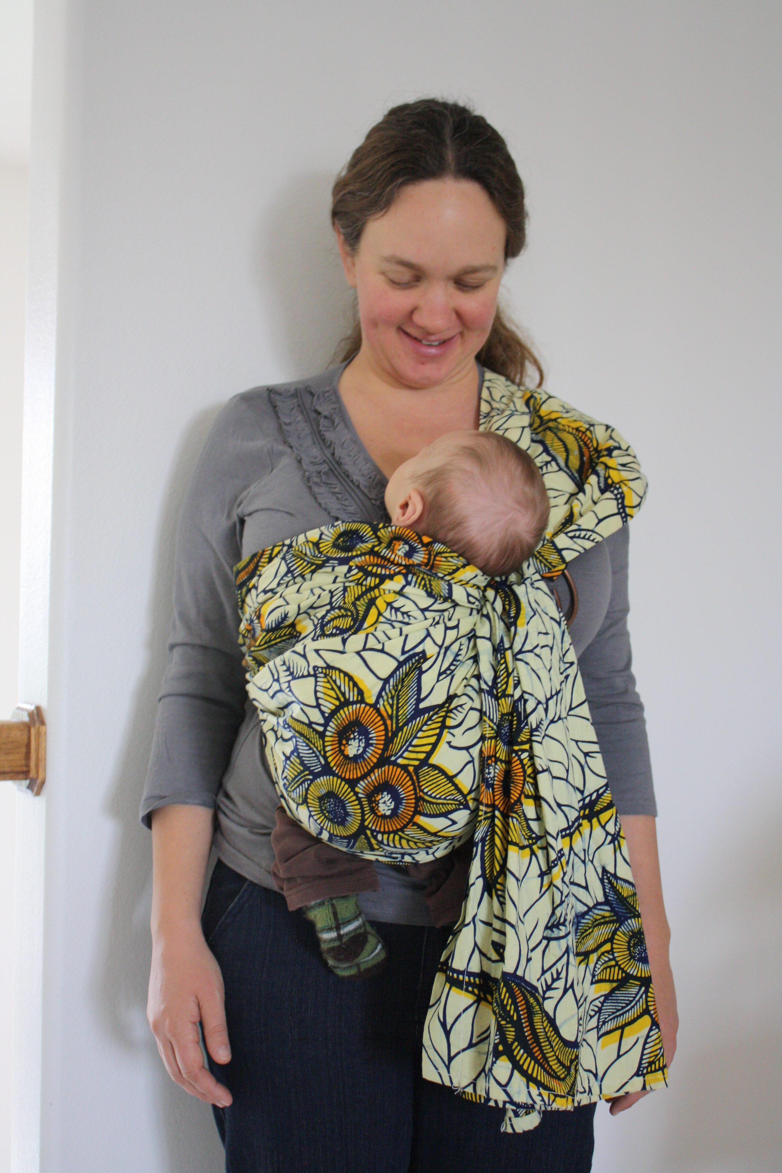 I do want to finish the “Birth Art” series, though maybe now it should be labeled “Baby Art.” Rio got so many cool creative gifts, and there’s so many fun things you can make to welcome a new little one. I made this baby ring sling myself, and you can make one for the fraction of what one costs, and only about an hour of time, if you’re already a proficient sewer. It’s a great baby shower gift.