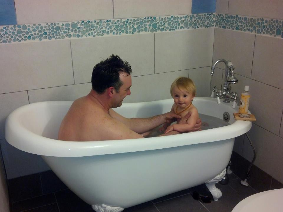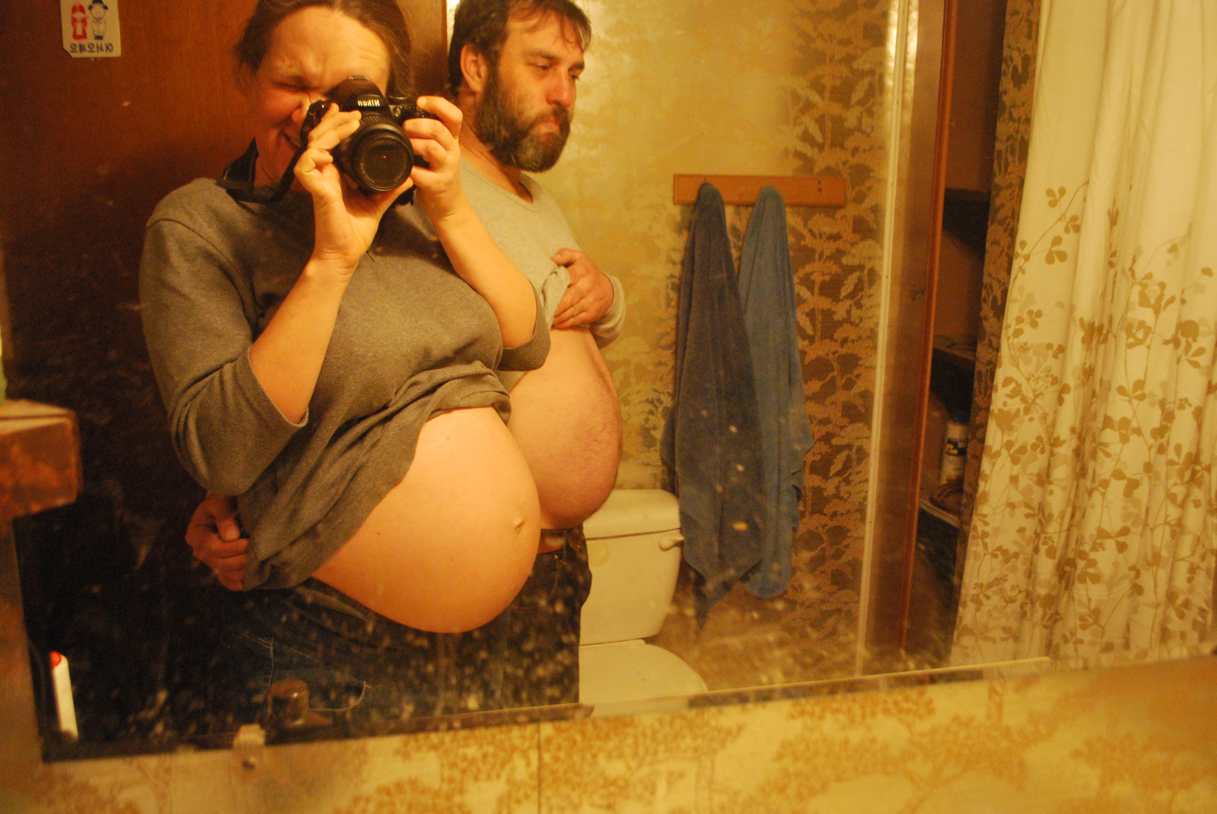 What I do have are some photos of the old bathroom that we took while making a belly cast right before Rio arrived, and some photos of the new bathroom.